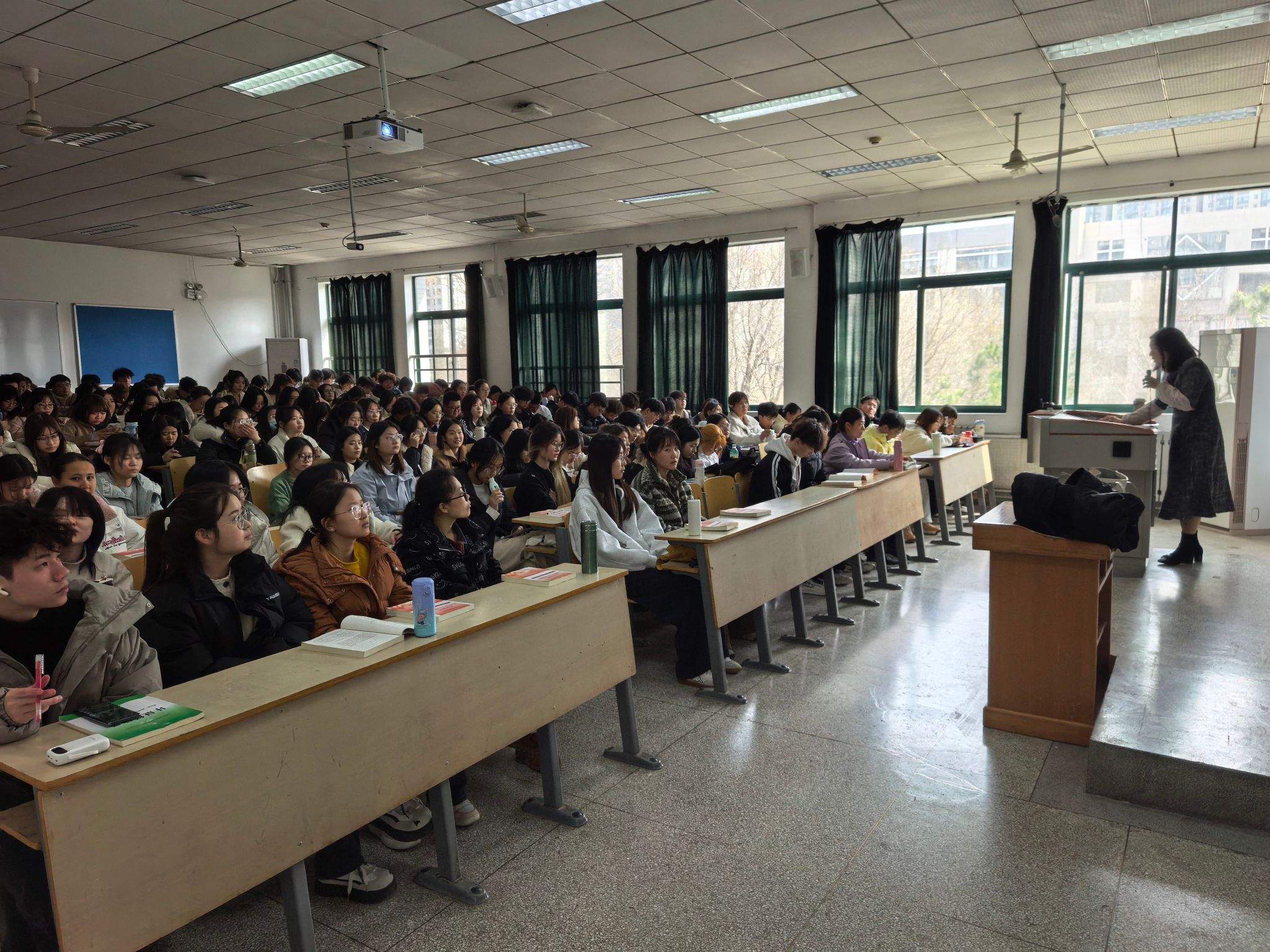 检查组一行分别前往教十楼、综南楼等实地检查课程开设、教师到岗、员工出勤及课堂秩序等情况。从检查情况看,新学期开学第一课总体情况良好:任课教师备课充分、精神饱满,授课内容丰富、条理清晰;员工出勤率高、听课认真,课堂氛围活跃,各项教学准备工作充分到位。