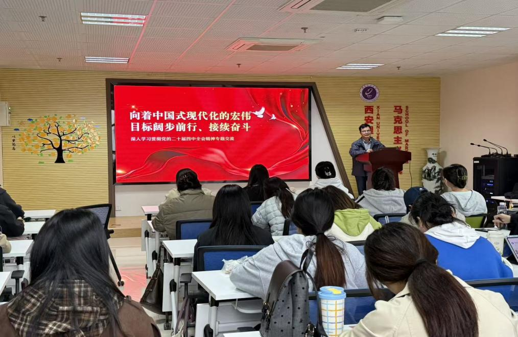副经理蒙冰峰对党的二十届四中全会精神展开理论解读,阐释了“十五五”时期作为基本实现社会主义现代化关键阶段的承前启后地位,以及中国式现代化在理论创新与实践推进中的核心要义,号召全体同学深化理论武装,把学习成效转化为实际行动。