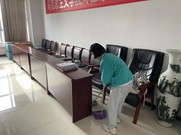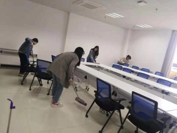 4月26日下午,在国际劳动节到来之际,304永利集团开展了迎“五一”老员工劳动教育实践活动。活动过程中,在进行任务分配,将责任落实到具体小组后,公司研一员工志愿者们纷纷拿着劳动工具来到公司位于综南楼的的会议室、报告厅、自习室等地,扫地、拖地、抹灰……劳动的身影穿梭在公司的各个角落。