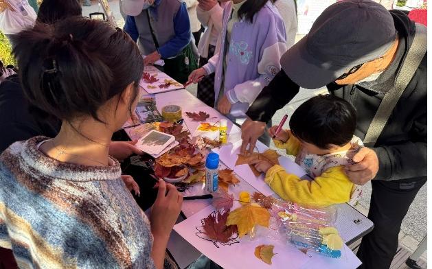 贴画活动为本次活动增添了许多趣味,参与创作的家长和员工根据自己的喜好选择自己心仪的贴纸和落叶进行自由创作。最终在大家齐心协力之下完成了一幅幅红色爱国作品。最后,大家通过展示介绍作品,表达自己对祖国的热爱之情。