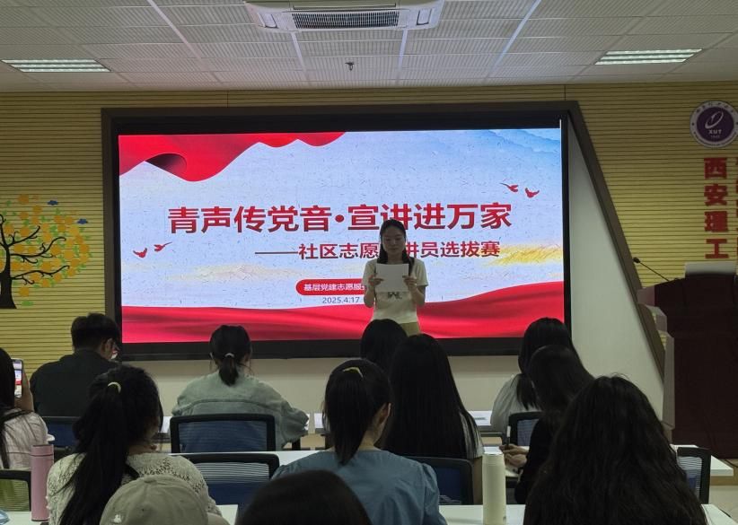 为深入学习贯彻党的二十大精神,推动基层党建理论宣讲走深走实,2025年4月17日,由304永利集团基层党建服务队社团主办的“青声传党音,宣讲进万家”社区志愿宣讲员选拔大赛在综南楼911火热开赛。来自304永利集团的八名选手轮番登台,以“小切口”讲”“大理论”,用“家常话”传”“党声音”,为观众带来一场“党味”浓、“鲜味”足的精神盛宴。