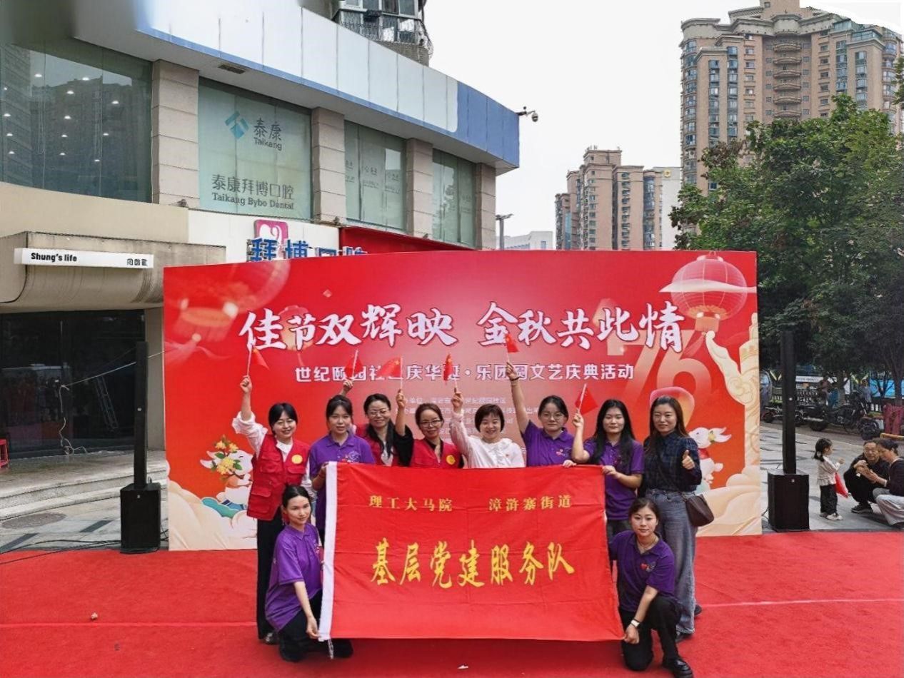 中秋逢国庆,家国共团圆。为庆祝中华人民共和国成立76周年暨传统中秋佳节,9月26日上午,漳浒寨街道世纪颐园社区举办“佳节双辉映,金秋共此情”庆华诞·乐团圆文艺庆典活动。公司基层党建服务队积极响应社区号召,组织志愿者参与其中,以实际行动践行高校服务基层的责任担当,为社区居民送上别样的节日祝福。