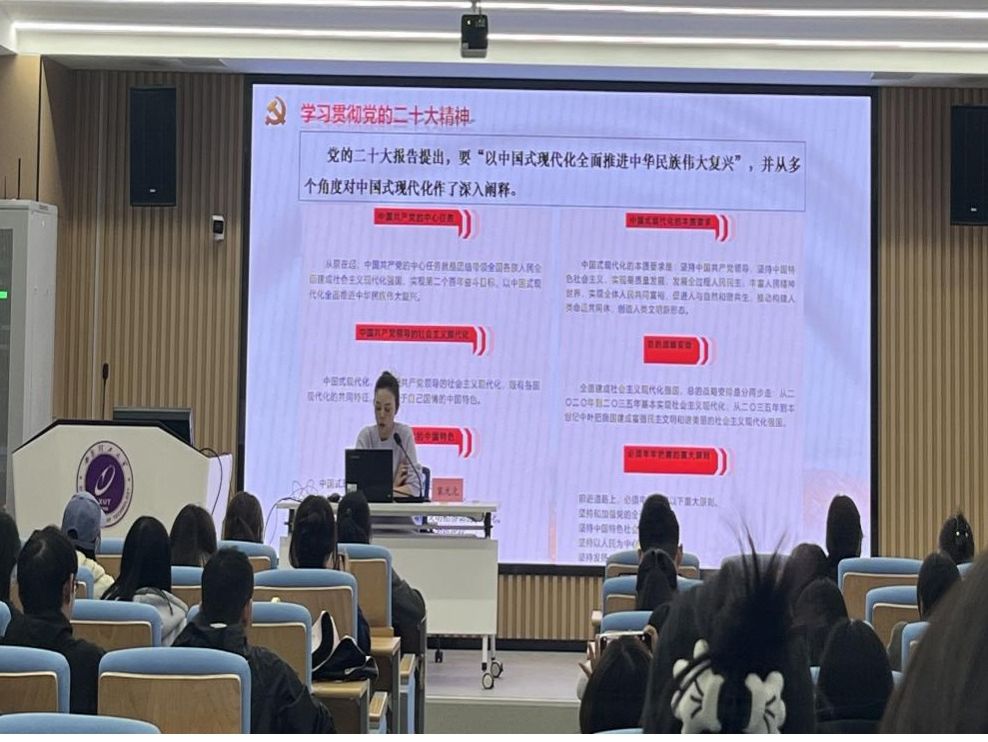 开班仪式结束后,本期团校首期专题讲座如期举行,宋元元老师以《中国式现代化的本质要求》为题开讲。她结合党的二十大报告中“中国式现代化”的核心论述,从问路、寻路、探路、开路四个维度展开,系统讲述了中国式现代化道路的历史源头、逻辑起点、本质要求、机遇挑战。同时,她结合高校团学工作实际,强调了青年团员在中国式现代化进程中应有的作为——既要“读原著、学原文、悟原理”,把握理论精髓;又要“接地气、贴实践、勇创新”,将理论转化为服务社会的行动。