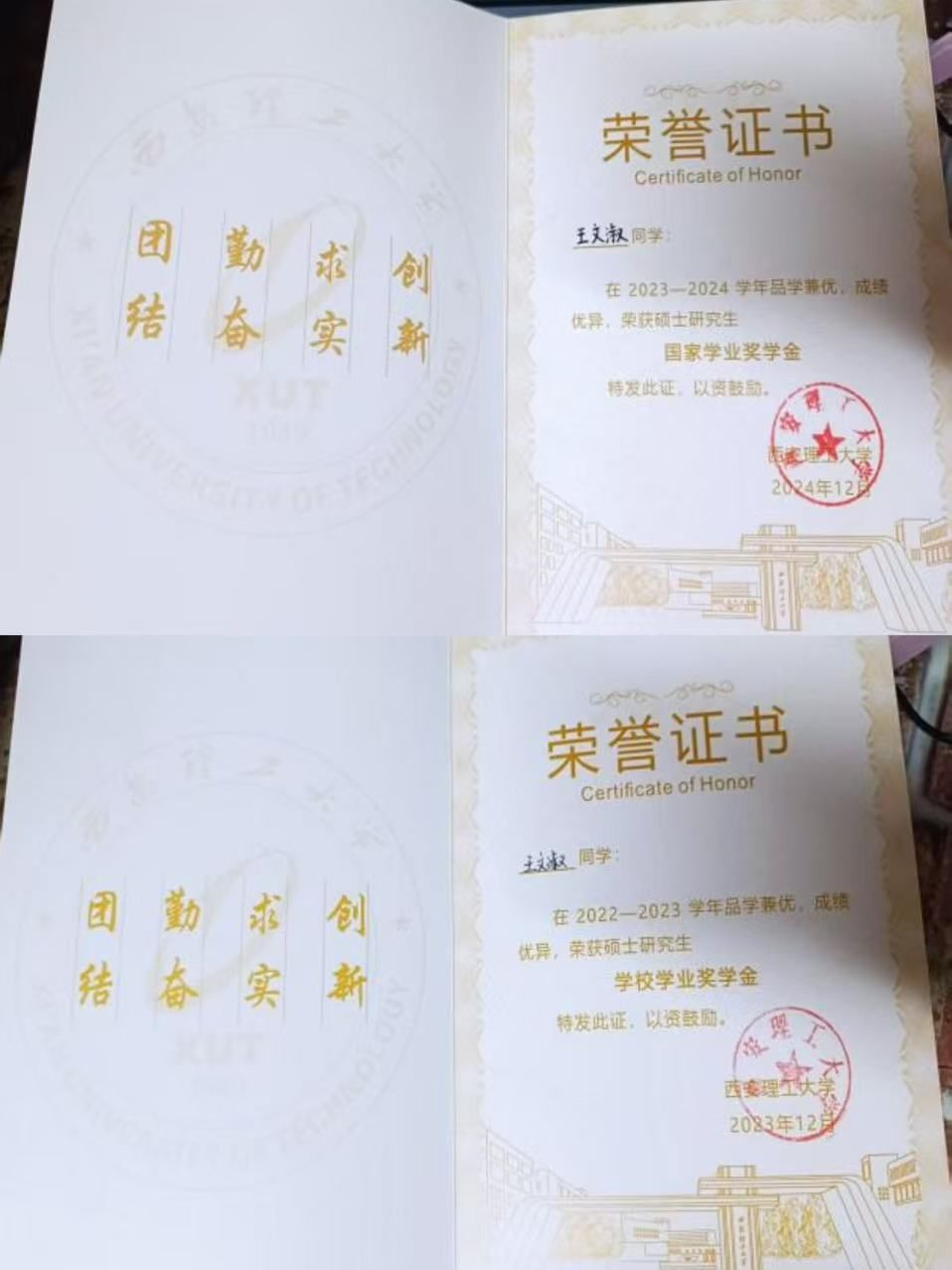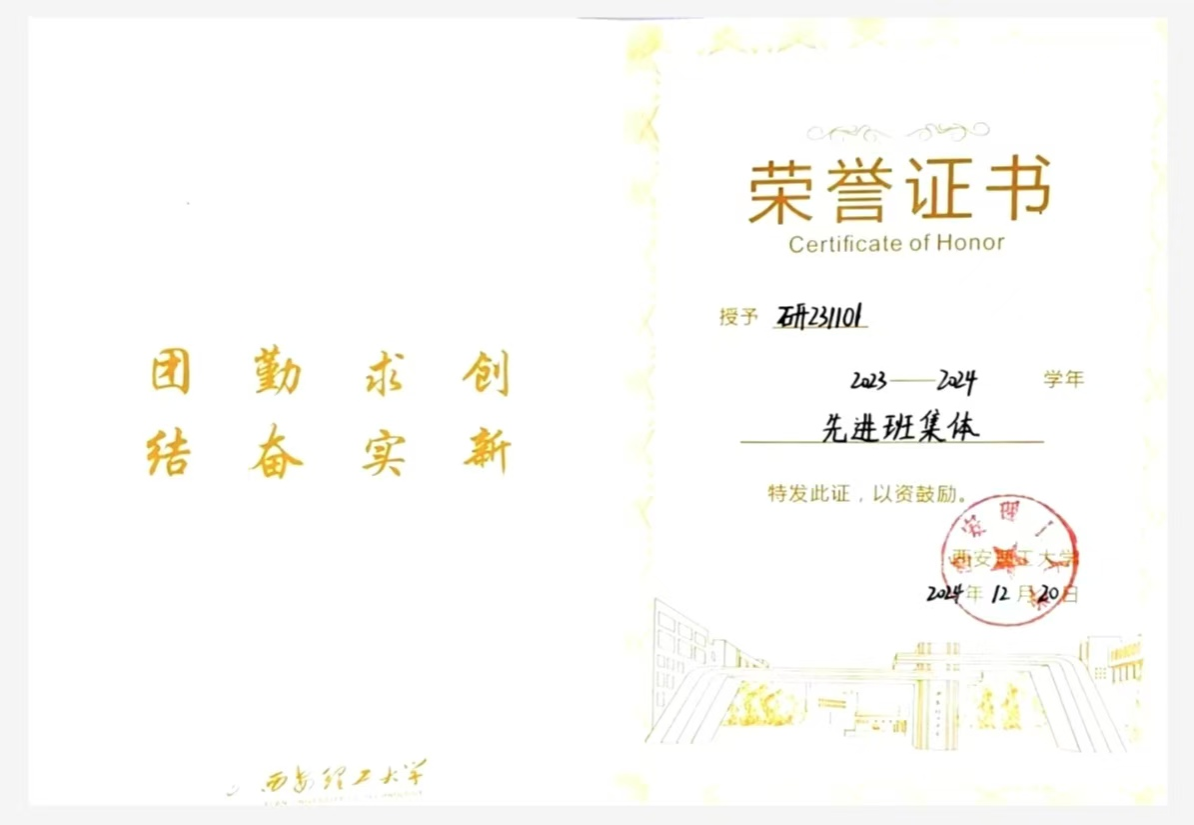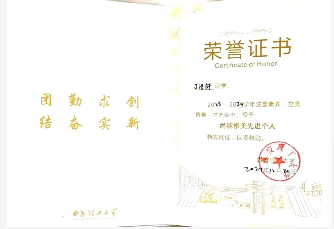 在三年班委的历练当中,他始终以自我提升为核心,在参与班级事务、统筹协作的过程中主动锤炼多元能力,每一次实践都是突破自我的契机。他注重在具体事务中积累经验,将班级工作作为打磨问题解决能力、团队协作能力与统筹规划能力的练兵场,不断拓宽认知边界、补齐能力短板,实现自我价值与集体发展的双向赋能,并于2024年获“尚能修美先进个人”,连续三年荣获“优秀研究生干部”称号。