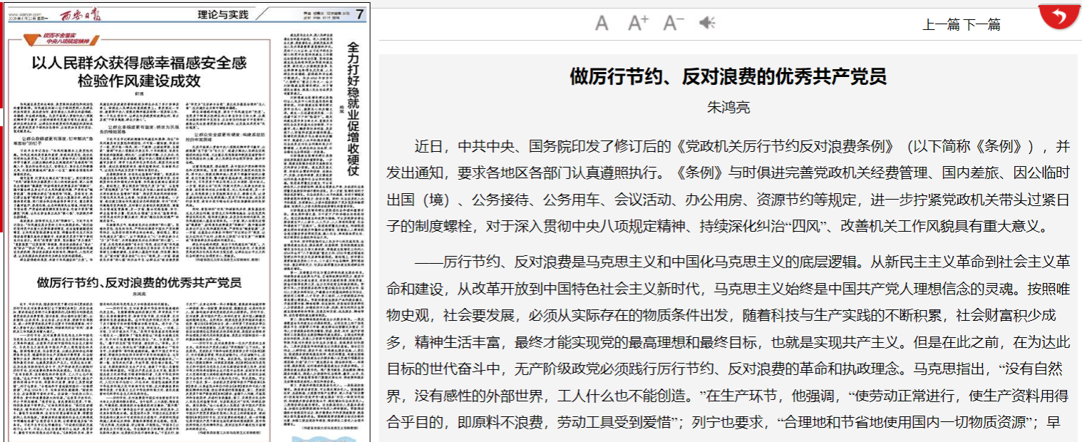 ——厉行节约、反对浪费是马克思主义和中国化马克思主义的底层逻辑。从新民主主义革命到社会主义革命和建设,从改革开放到中国特色社会主义新时代,马克思主义始终是中国共产党人理想信念的灵魂。按照唯物史观,社会要发展,必须从实际存在的物质条件出发,随着科技与生产实践的不断积累,社会财富积少成多,精神生活丰富,最终才能实现党的最高理想和最终目标,也就是实现共产主义。但是在此之前,在为达此目标的世代奋斗中,无产阶级政党必须践行厉行节约、反对浪费的革命和执政理念。马克思指出,“没有自然界,没有感性的外部世界,工人什么也不能创造。”在生产环节,他强调,“使劳动正常进行,使生产资料用得合乎目的,即原料不浪费,劳动工具受到爱惜”;列宁也要求,“合理地和节省地使用国内一切物质资源”;早在1934年1月,毛泽东同志就强调:“财政的支出,应该根据节省的方针。应该使一切政府工作人员明白,贪污和浪费是极大的犯罪。”在改革开放年代,邓小平同志强调,“艰苦创业,首先要我们党员、干部,特别是高级干部带头。”江泽民同志提出,“我们各级领导机关、领导同志和广大干部,更应自觉地发扬艰苦奋斗、勤俭节约的精神,没有任何理由铺张浪费,挥霍国家和人民的钱财。”胡锦涛同志强调的社会主义荣辱观中明确包含着“以艰苦奋斗为荣、以骄奢淫逸为耻”的条目。习近平总书记也明确指出,“不论我们国家发展到什么水平,不论人民生活改善到什么地步,艰苦奋斗、勤俭节约的思想永远不能丢。”《条例》的发布,是中国化时代化的马克思主义与时俱进的时代强音。