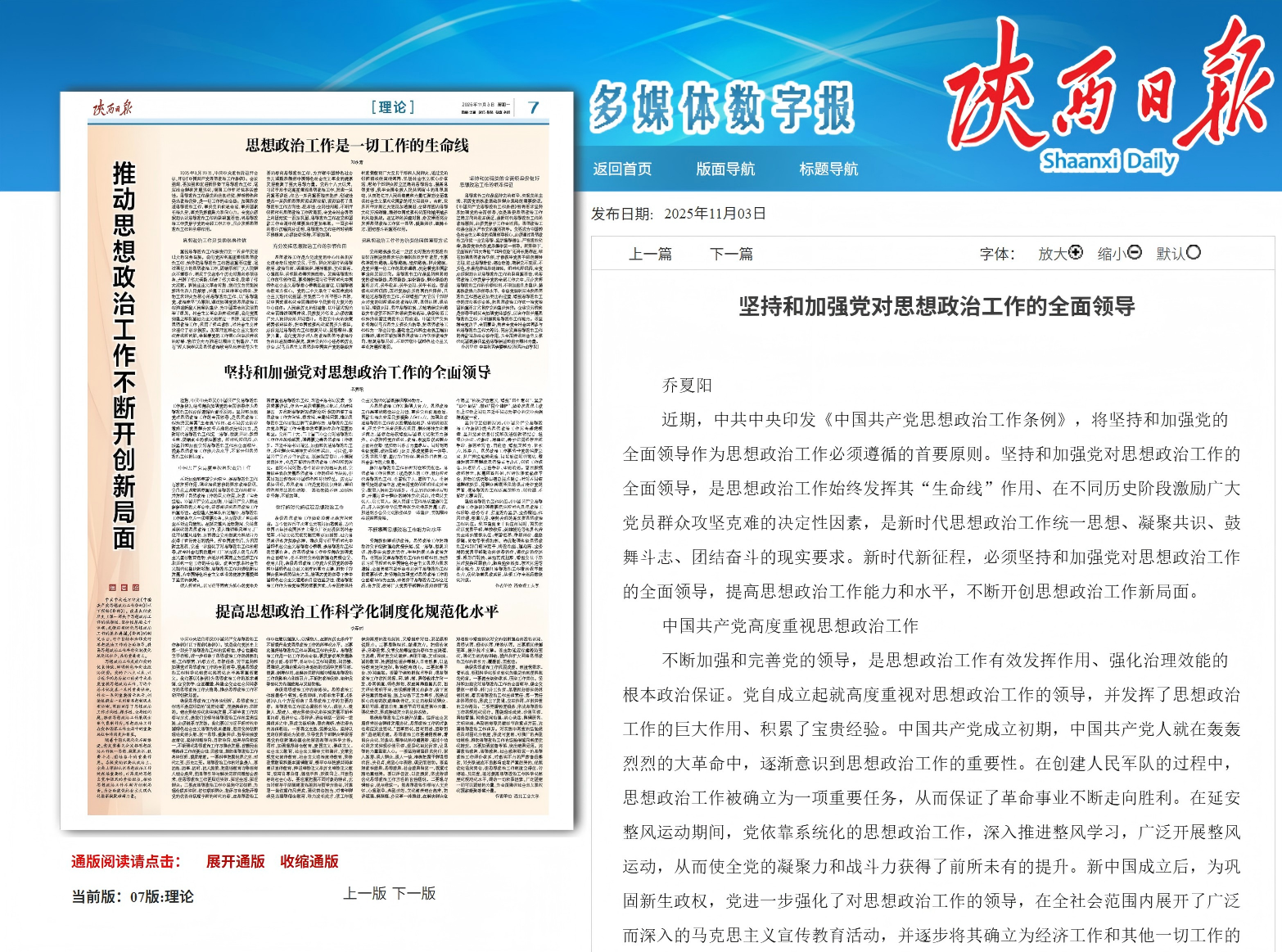 学习进行时|乔夏阳:坚持和加强党对思想政治工作的全面领导